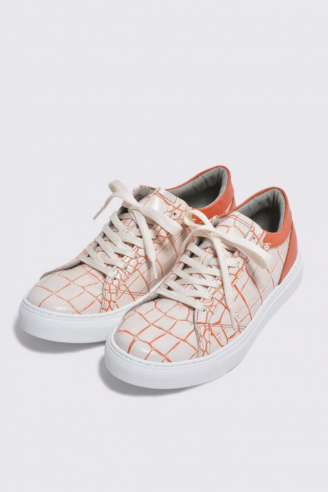 レザースニーカー クロコダイル ホワイトラインオレンジ 国産天然皮革 本革 革靴 メンズシューズ BajoLugo バジョルゴ(B1-1-2004-14)