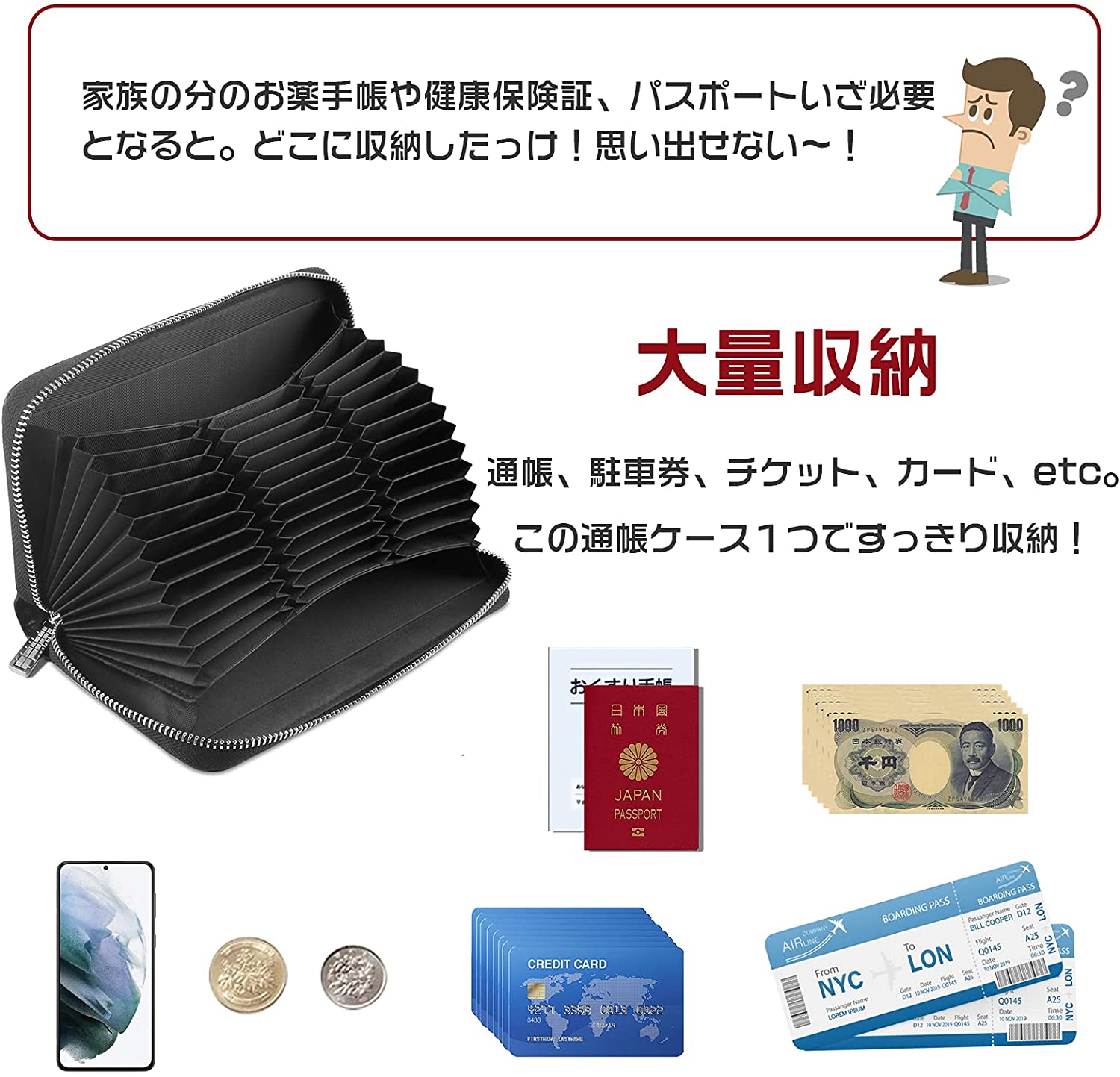 銀行通帳 カード パスポート 薬手帳 診察券 RFID 本革 財布 蛇腹式 スキミング防止 マルチケース 送料無料 おうち時間 セール sale ポイント消化 誕生日 母の日 父の日 敬老の日 ハロウィン クリスマス プレゼント ギフト