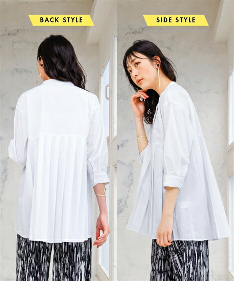 素材 品質=ポリエステル85%・綿15% 前・袖口ボタン開き 原産国 中国製 メーカー品番 ZZY4322B3529 コメント プリーツ切り替えデザインが新鮮なマオカラーブラウス 1枚で着ても十分気映えのするアイテムですが、重ね着用としても満点!裾からチラッと見せるプリーツがとってもお洒落なスタイリングに。