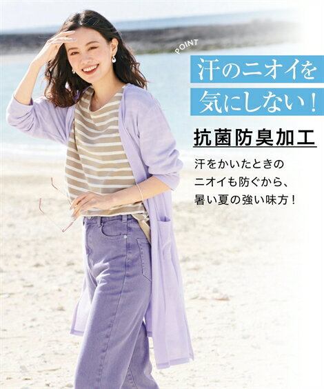 トップス チュニック 大きいサイズ 綿混うすカルスリットロング丈カーディガン UVカット+吸汗速乾+抗菌防臭+毛玉防止 ニッセン nissen