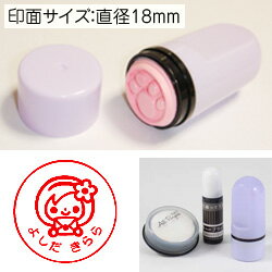 ポンポンゴム印イラスト入りおなまえスタンプ印面サイズ:直径18mmスタンプパッド付きゴム印/お名前スタンプ/ハンコ/名前オーダー【保育園 幼稚園 入園グッズ】