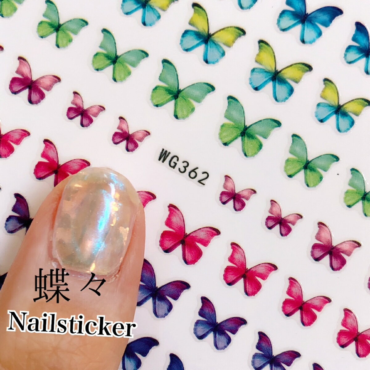 商品情報サイズ台紙サイズ 10センチ×8WG362 1枚その他商品説明ネイルシール ネイルステッカー貼るだけ簡単なネイルシール!モルフォ蝶々 バタフライ 春夏ネイル今流行のうるうるネイルとに埋め込んでもとてもきれいです。