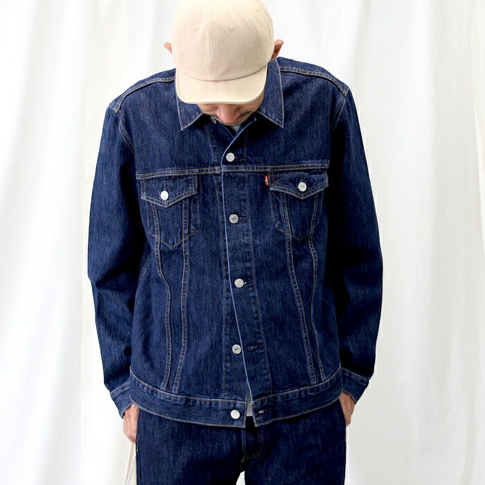 モデル:H:180 着用サイズ:L S:着丈60cm、胸囲108cm、袖丈63cm、肩幅48cmM:着丈62cm、胸囲114cm、袖丈64cm、肩幅50cmL:着丈64cm、胸囲126cm、袖丈65cm、肩幅51cm 本体:綿100% 米国製/アメリカ製 Levi'sLevi's 「MADE IN THE USA」デニムトラッカージャケット Other image フィットは基本的に3rdトラッカーと同様。