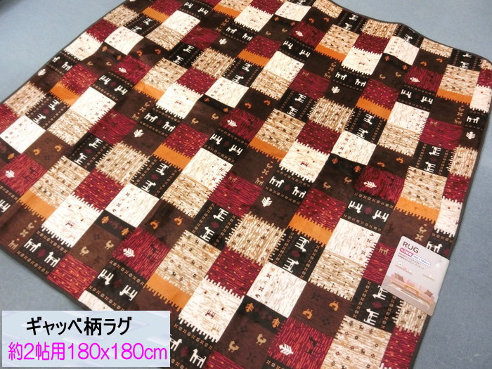 ギャベ柄 ラグ 180x180cm 約2畳 14832 レッド こたつ敷き 中敷カーペット 正方形 ギャッベ