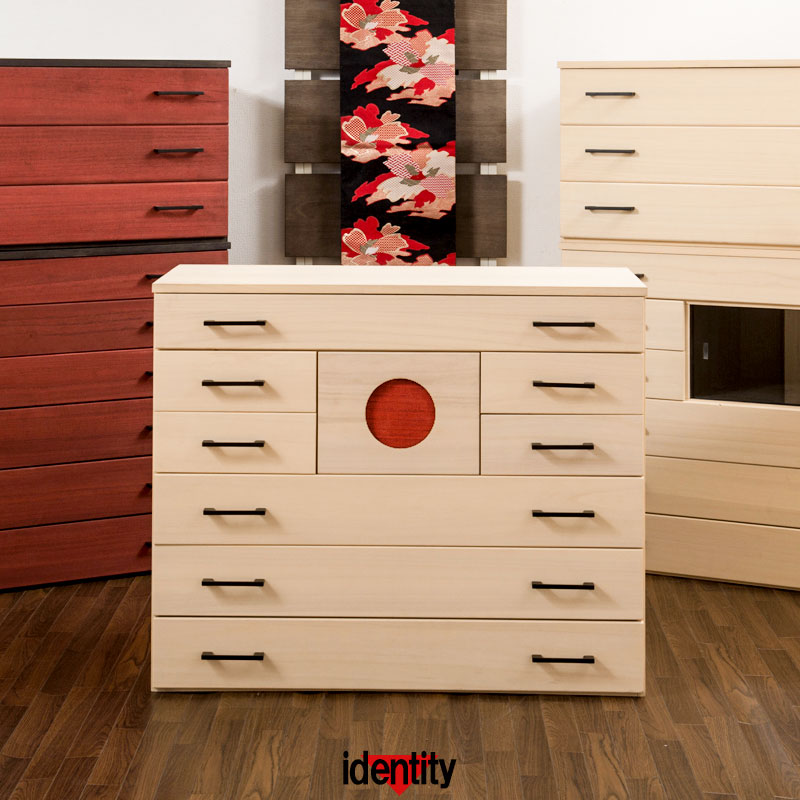 これを継承しつつ全く新しい、今の時代に合うカラーリング・デザインに新化した個性的桐箪笥ライン 『identity』シリーズが登場。