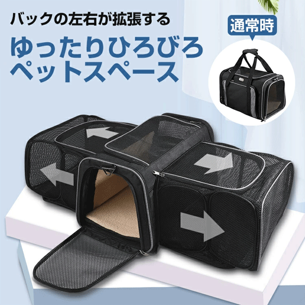 商品名 拡張機能付き2way ペットキャリーバッグ 商品説明 ■手提げ・肩掛け・キャリー・ペットハウスの拡張機能付きペットキャリーバッグ。