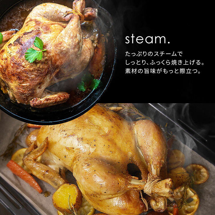 庫内の隅々までスチームが行き届くから、食材をよりムラなくしっとりジューシーに焼き上げます。