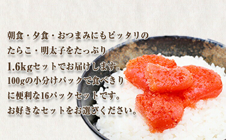 【ふるさと納税】組合せが選べる 一口カット たらこ、めんたいこ(100g×16P) 食べやすい一口カットのたらこです。