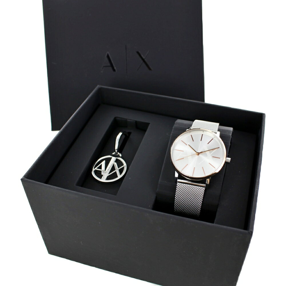 AX アルマーニエクスチェンジ BOXセット 腕時計 キーホルダー付き レディース かわいい 女性 プレゼント 誕生日 20代 30代 おしゃれ ブランド シルバー メッシュ 通勤 通学 仕事用 社会人 プライベート ギフト 合格 入学 卒業 社会人 記念日 母の日 父の日 2022